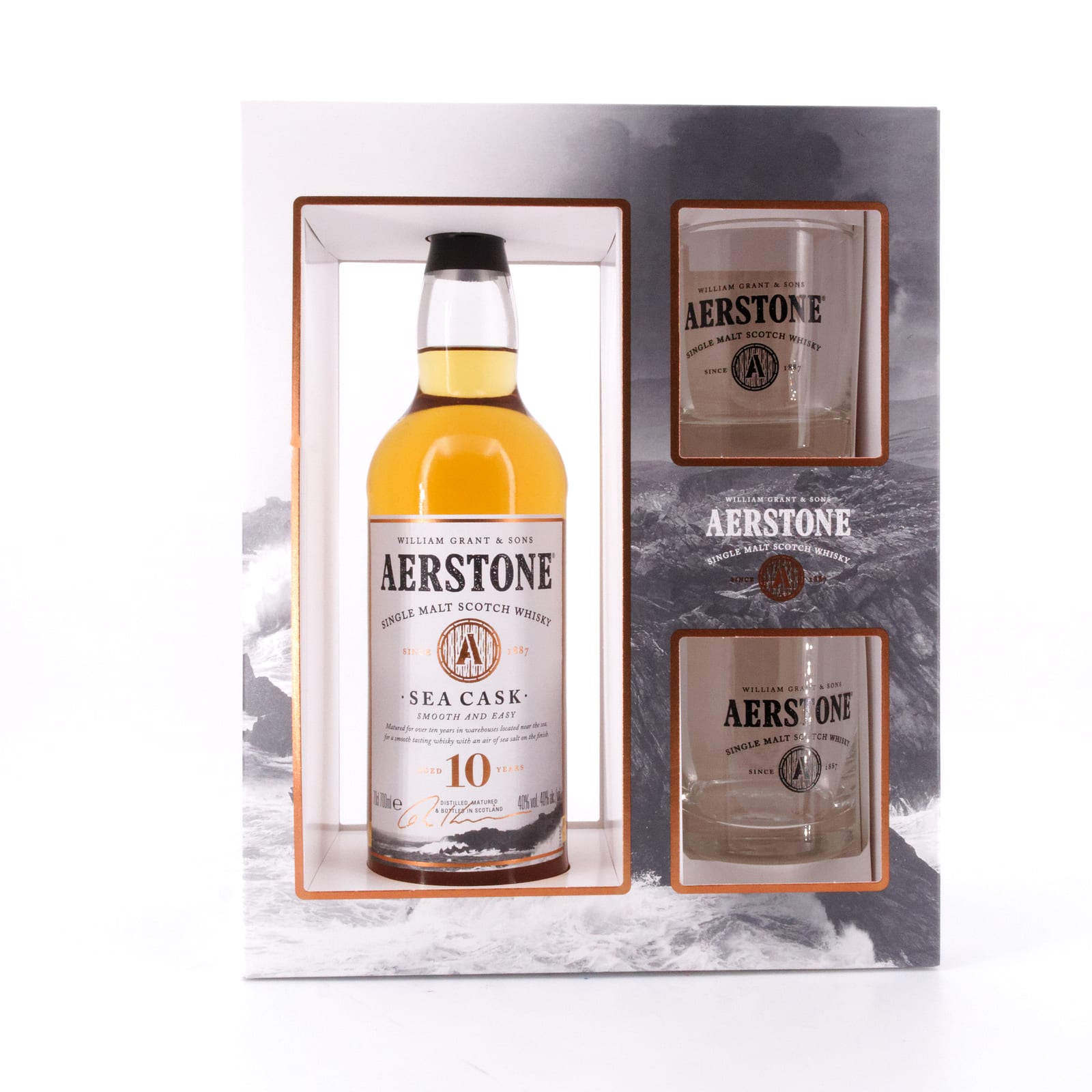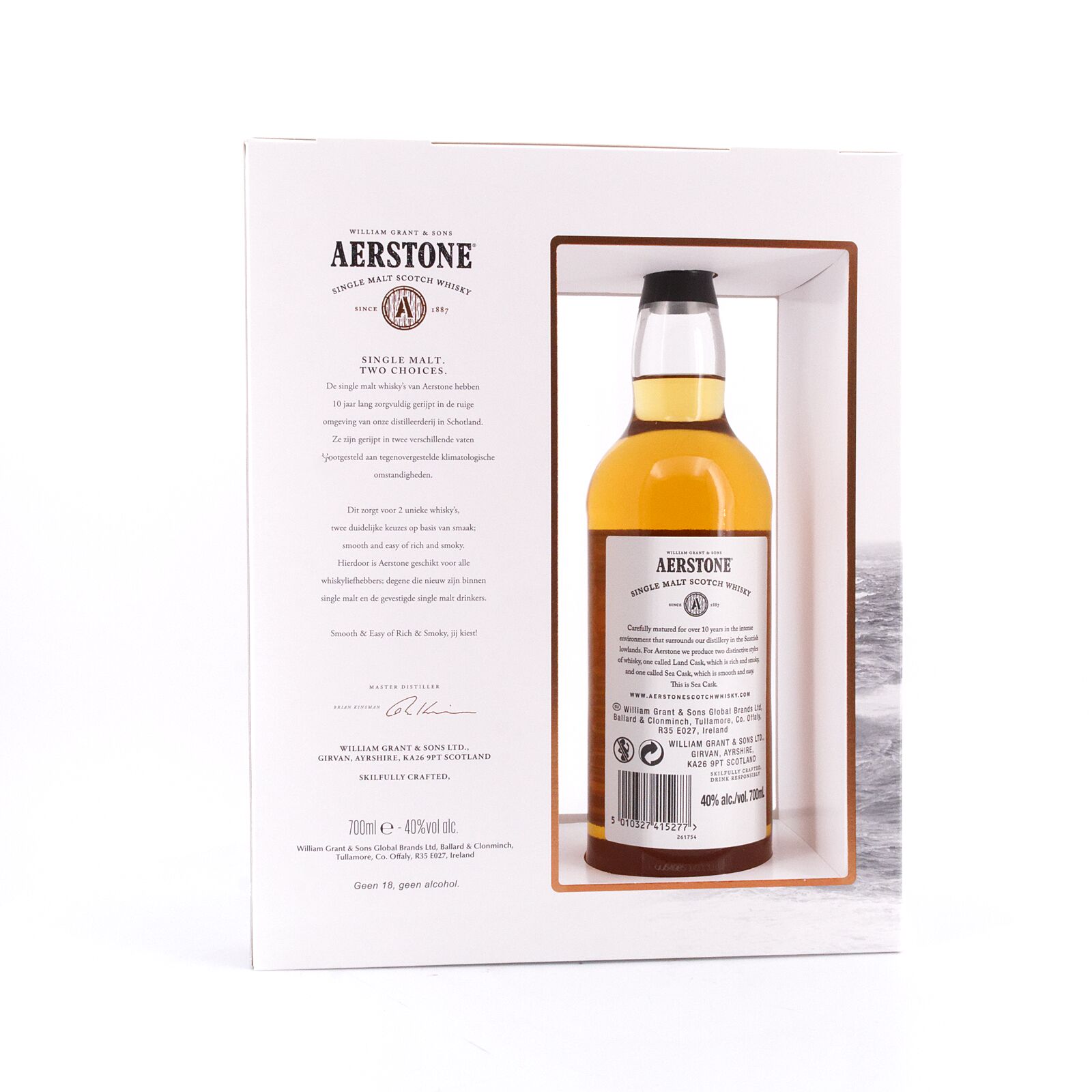 Der „Aerstone Sea Cask“ ist die Abfüllung eines nicht näher bekannten Single Malts aus den Lowlands. Man mag hier spekulieren, ob es sich hier vielleicht um einen Whisky der Ailsa Bay Destillerie in Girvan handelt, da die Brennerei zu „William Grant & Sons“ gehört, die den „Aerstone“ herausgebracht haben. Aber man weiß es nicht. Den „Aerstone“ gibt es in zwei Varianten, einmal als „Sea Cask“, einmal als „Land Cask“. Das Ziel dabei: die Whisky-Sprache für Neueinsteiger zugänglicher machen, dabei erfahrene Whisky-Liebhaber gleichermaßen begeistern. Das Konzept dahinter ist charmant wie schlüssig, ein Malt lagerte unmittelbar an der See, der zweite Malt im Landesinneren. Den Beinamen Sea Cask trägt dieser „Aerstone“ also deshalb, da der abgefüllte Whisky zehn lange Jahre in Lagerhäusern an der Küste Ayrshires lagern durfte.