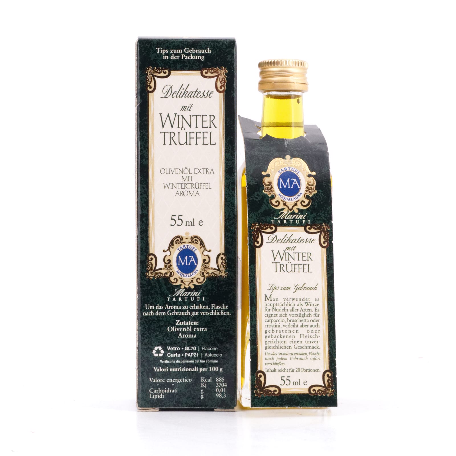 Fein Trüffel-würzig und rund, verleiht dieses Olivenöl feinen Marinaden oder auch einer ganz einfacher Pasta genau den richtigen Pfiff.