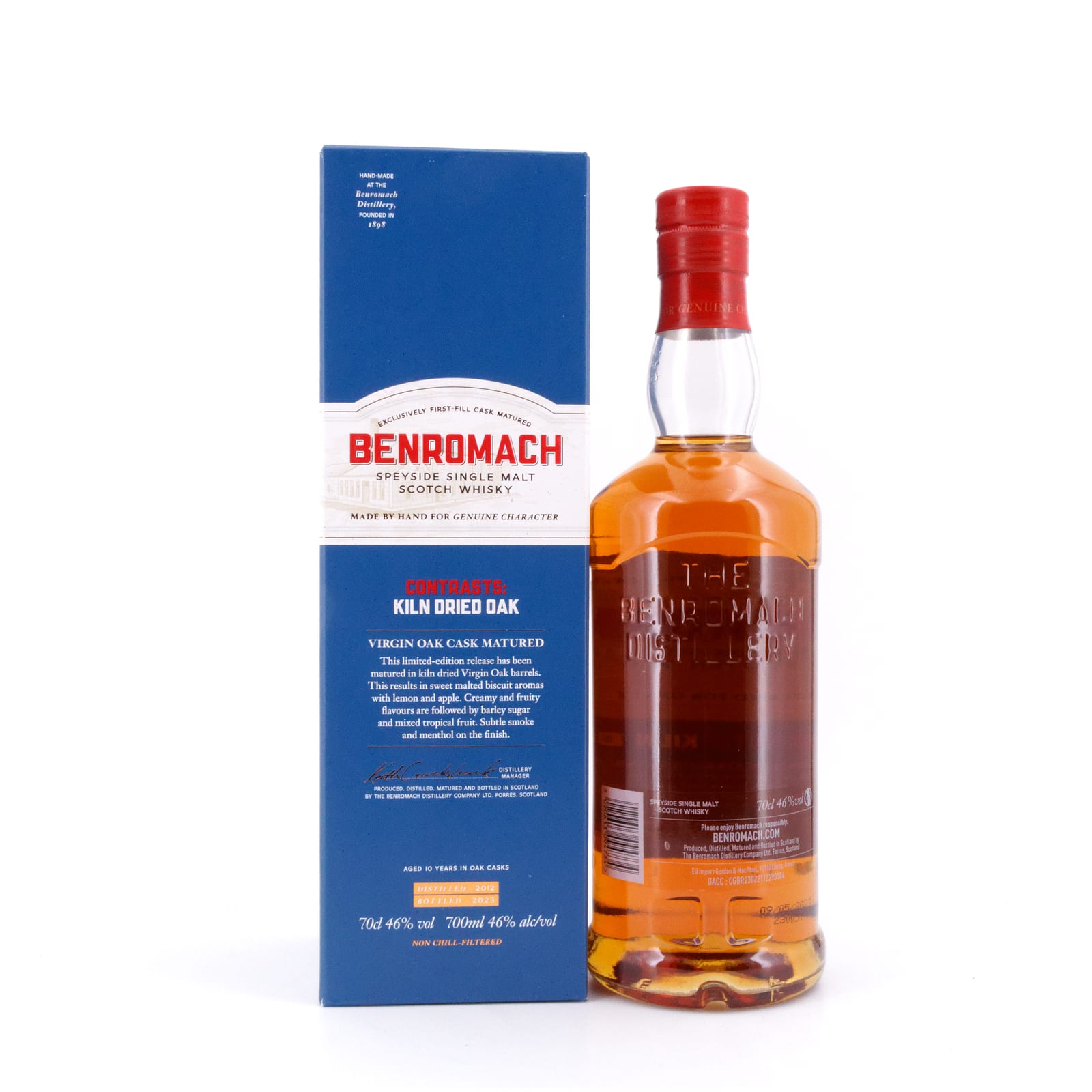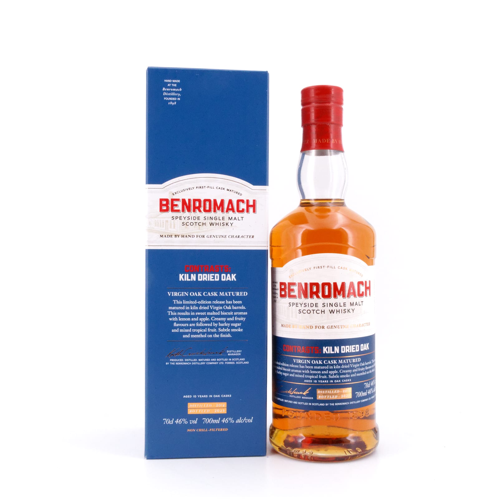 Die Benromach Distillery, ein familiengeführter Betrieb im Herzen von Speyside, ist bekannt für ihre handwerklich hergestellten Whiskys, die nach traditionellen Methoden produziert werden. Ein besonderes Highlight ihrer Kollektion ist der Benromach Contrasts: Kiln Dried Oak, gereift in Virgin American Oak Casks.