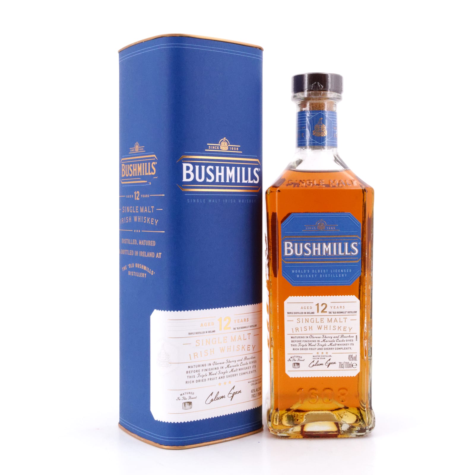 Die Old Bushmills Distillery im nordirischen County Antrim gilt als älteste lizenzierte Whiskey-Brennerei der Welt und steht seit Jahrhunderten für dreifach destillierte, besonders weiche Single Malts. Mit dem Bushmills 12 Jahre erweitert die Marke ihr Kernsortiment um einen Single Malt, der in Oloroso-Sherryfässern und Bourbon-Barrels reift und anschließend ein Finish in Marsala-Weinfässern erhält – ein „Three Wood“ Ire mit 40 % vol, der Trockenfrüchte, Karamell, Schokolade und sanfte Gewürze elegant miteinander verbindet.