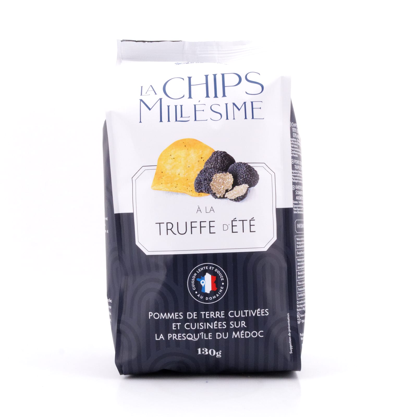 Domaine de la Croustille La Chips Millésime à la Truffe d'été ist ein exquisiter Snack für alle, die das Aroma und den Geschmack von Trüffeln lieben. Die handgefertigten Chips werden aus sorgfältig ausgewählten Kartoffeln hergestellt und mit feinstem Olivenöl und echtem Sommertrüffel aus Italien gewürzt.