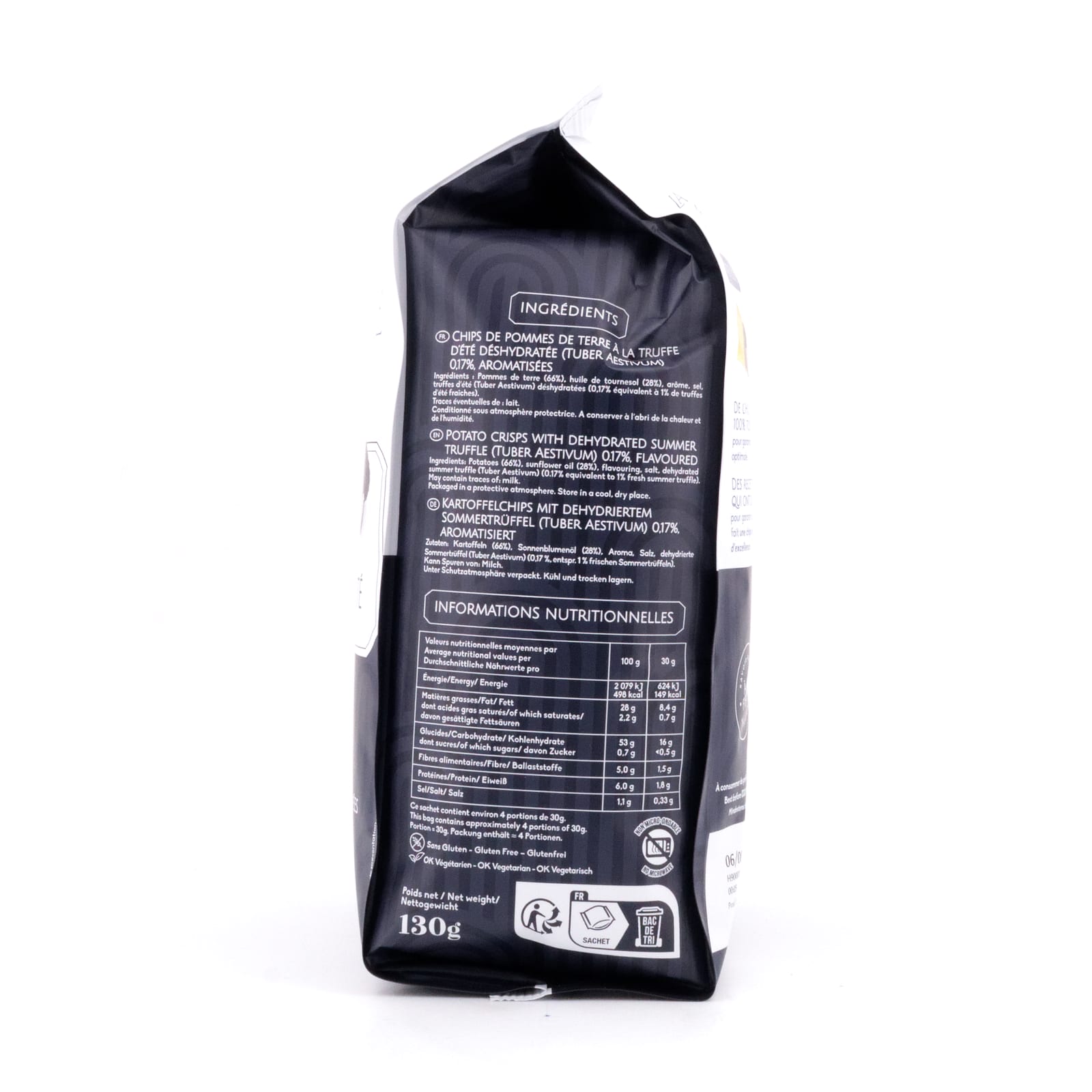 Die Chips zeichnen sich durch ihre knusprige Textur und den intensiven Geschmack von Sommertrüffel aus, der sich durch eine subtile Schärfe und ein tiefes, erdiges Aroma auszeichnet. Die Kombination aus der Knusprigkeit der Chips und dem unvergleichlichen Geschmack von Sommertrüffeln macht diese Chips zu einem besonderen Genusserlebnis.
