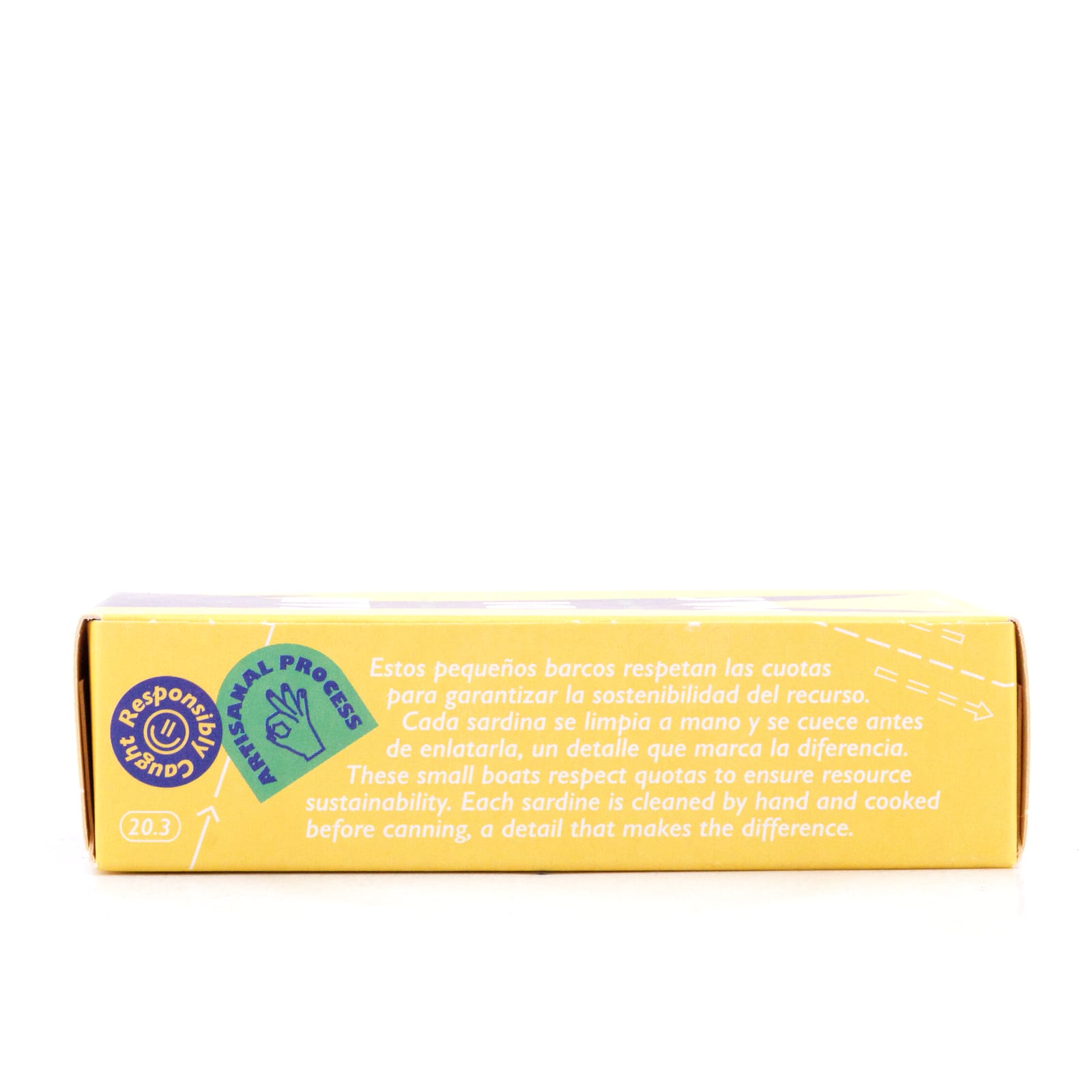 Don Gastronom, ein spanisches Familienunternehmen mit Sitz in Bilbao, steht seit 1966 für hochwertige Fisch- und Meeresfrüchtekonserven. Die "Sardinen in Olivenöl mit Zitrone" vereinen traditionelle Handwerkskunst mit mediterranem Geschmack. Fangfrisch verarbeitet, werden die Sardinen schonend gegart und von Hand in feines Olivenöl mit Zitronenstücken eingelegt, was ihnen eine erfrischende Zitrusnote verleiht.