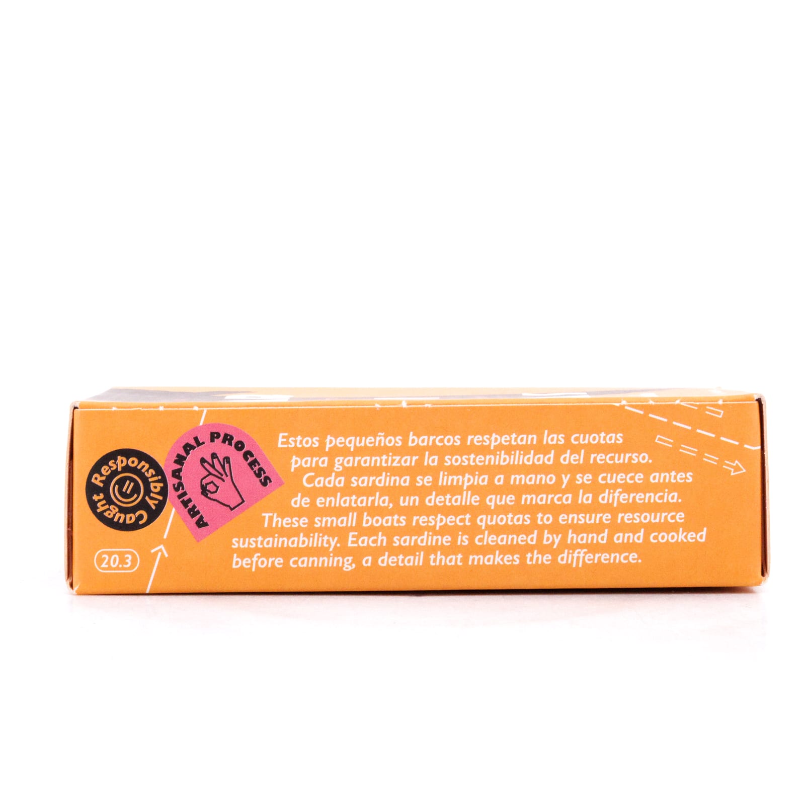 Don Gastronom ist ein spanisches Familienunternehmen mit Sitz in Bilbao, das seit 1966 für hochwertige Fisch- und Meeresfrüchtekonserven steht. Die "Würzigen Sardinen in Olivenöl" sind ein Paradebeispiel für die Verbindung von traditioneller Handwerkskunst und mediterranem Geschmack. Die Sardinen werden fangfrisch verarbeitet, schonend gegart und von Hand in feines Olivenöl mit Piri-Piri-Chili eingelegt, was ihnen eine pikante Schärfe verleiht.