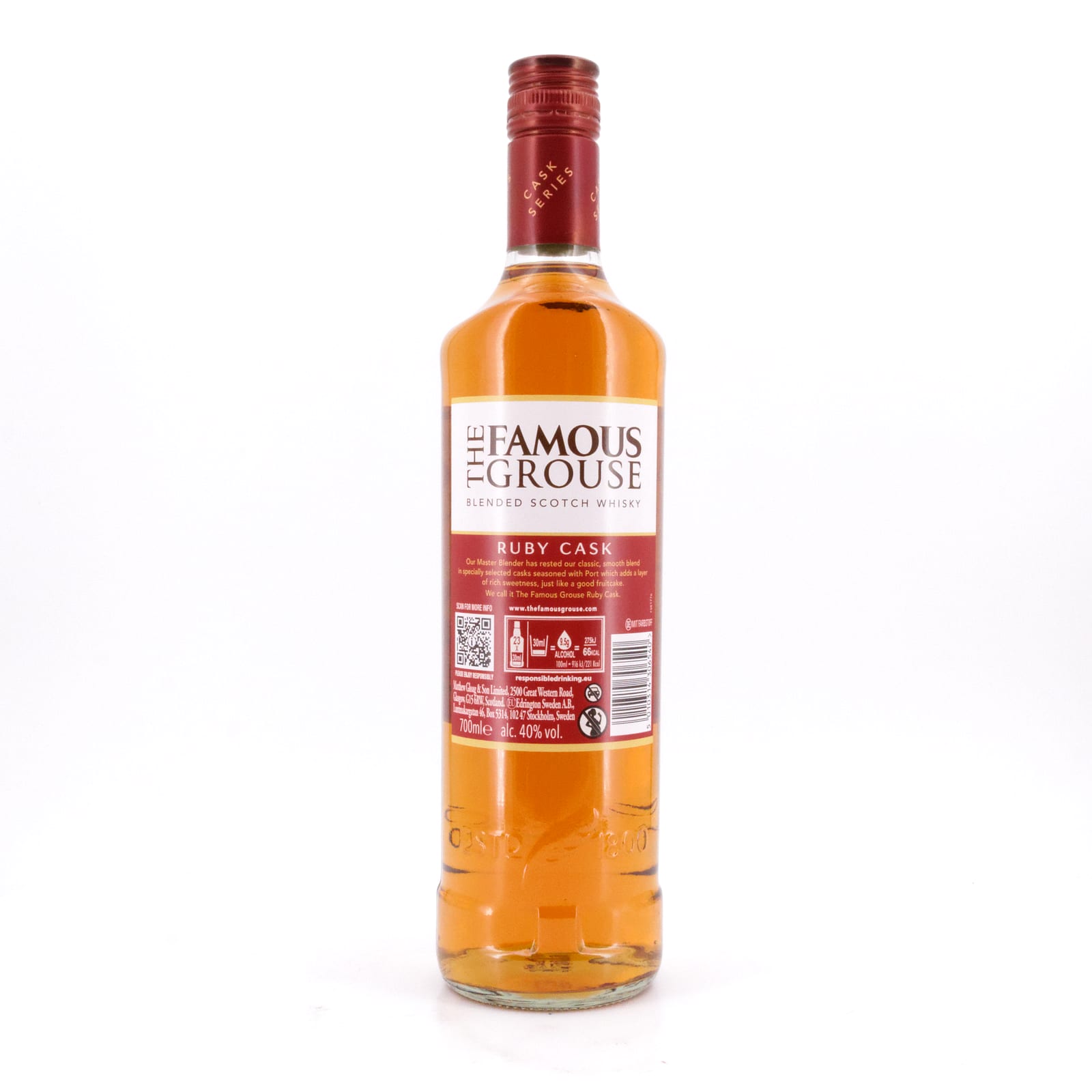 Heute gehört die „Famous Grouse“ zur „Edrington Group“. Der „Famous Grouse Ruby Cask“ erschien im Juli 2018 zunächst exklusiv bei der britischen Supermarkt-Kette „Sainsbury’s“. Er ist nach dem „Famous Grouse Bourbon Cask“ aus dem April 2018 die zweite Abfüllung in der „Cask Series“, von „Edrington“ als sog. everyday premium expressions konzipiert. Dahinter liegt die Idee, einen vergleichsweise kostengünstigen Einblick in die unterschiedlichen Fass-Charaktere zu bieten. Der „Famous Grouse Ruby Port“ lagerte abschließend in Fässern, die zuvor mit Portwein gesättigt worden waren.