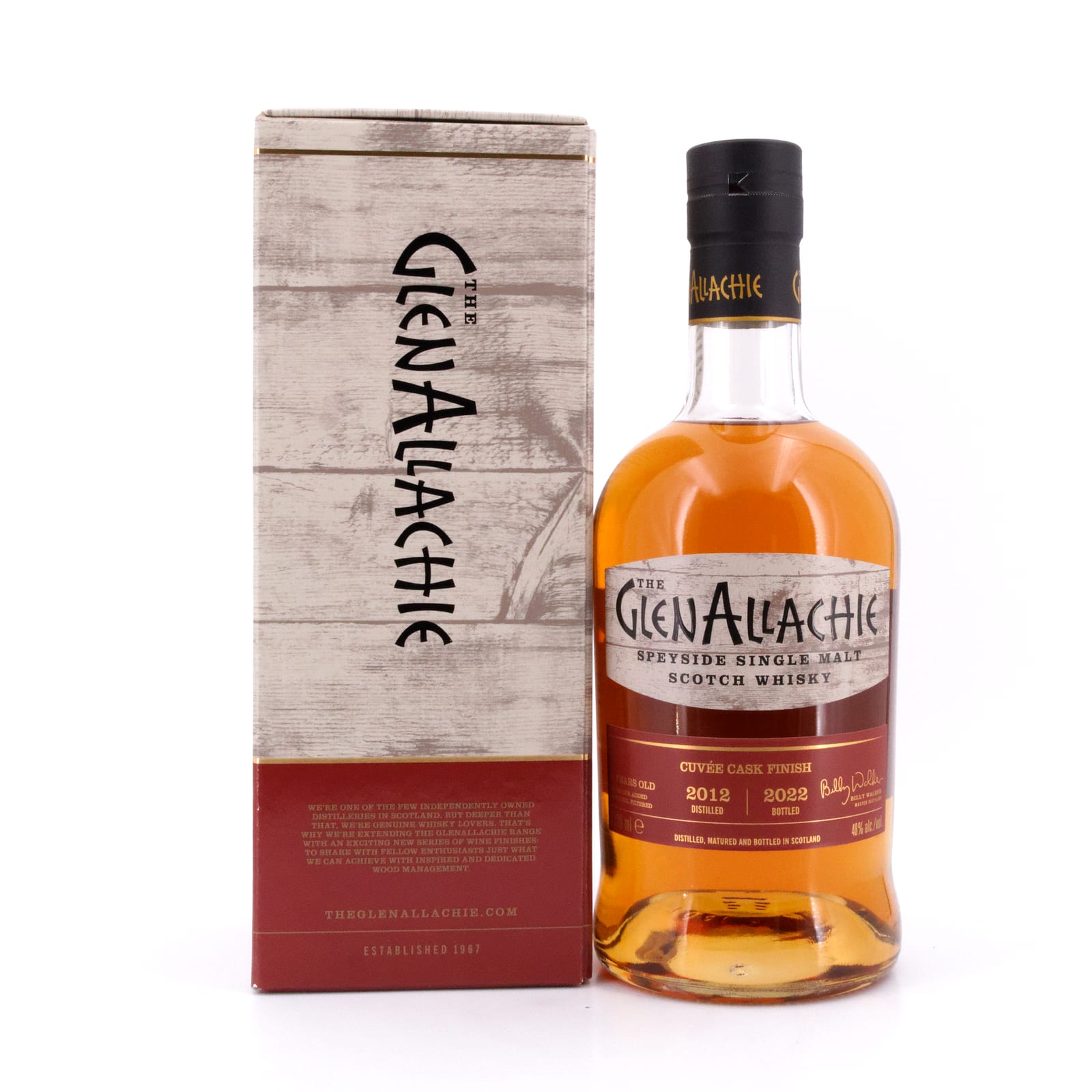 Die 9-jährige Cuvée von GlenAllachie ist das Resultat aus erlesenen Weinfässern aus den weltberühmten Regionen Bordeaux, Languedoc und Valpolicella. Jedes Barrique wurde sorgfältig überwacht, um dessen individuelle Charakterentwicklung zu gewährleisten. Der als reichhaltig und fruchtig beschriebene Whisky wird mit 48% vol., ohne zusätzliche Farbstoffe abgefüllt und ist auf 3000 Flaschen limitiert.