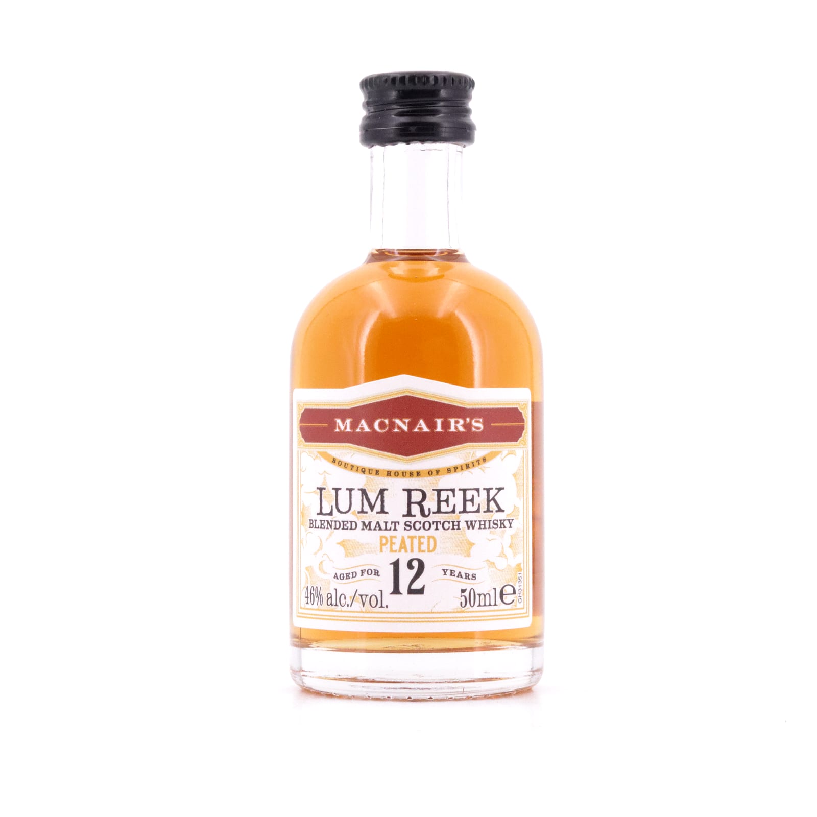 Der „MacNair’s Lum Reek Blended Malt“ ist eine Vermählung von Islay, rauchigem Speyside mit GlenAllachie Single Malt Whisky, gelagert bei GlenAllachie in First Fill Bourbon, frischem Eichenholz oder ex-Rotwein-Fässern, bevor er 12-jährig nicht kühlgefiltert und ungefärbt mit kräftigen 46 Vol% Alkoholgehalt abgefüllt wurde.