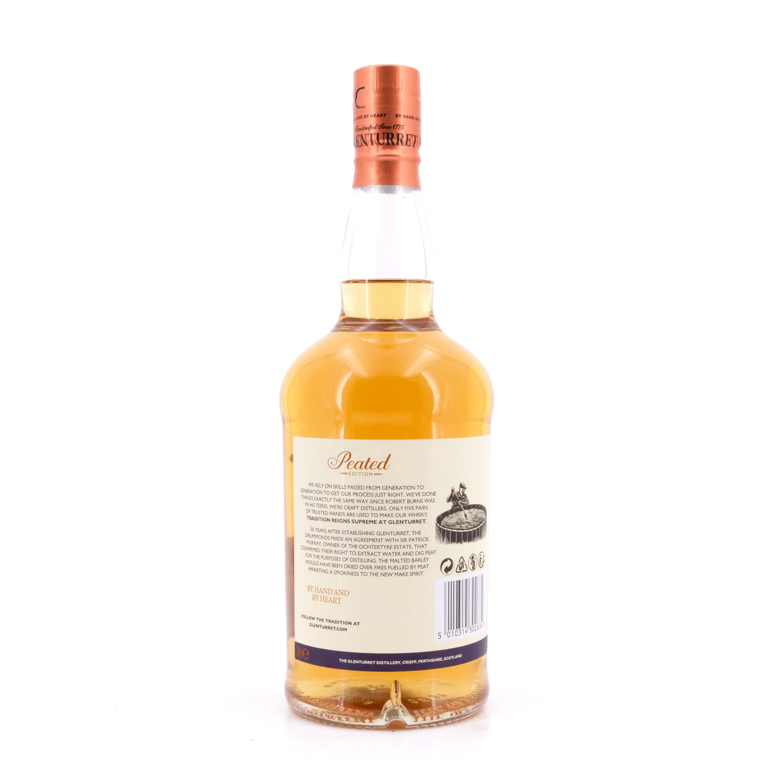 Glenturret ist in erster Linie bekannt für die „Famous Grouse“, einen der populärsten Blended Whiskies überhaupt. Dass die Glenturret Destillerie auch ausgezeichnete Single Malts in ihrem Sortiment hat, zeigt die bereits zweite Auflage der „Glenturret Peated Edition“, diesmal mit 43 Vol% Alkoholgehalt abgefüllt. Denn obwohl torfiger Whisky bei Glenturret eine lange Tradition hat, fand er lange Zeit ausschließlich als Bestandteil der „Famous Grouse“ Verwendung. Mit dieser getorften Variante des Glenturret erinnert die Destillerie an ihre Gründerzeiten Ende des 18. Jahrhunderts und den ursprünglichen Geschmack des damals gebrannten Whiskies, für dessen Herstellung beinahe ausschließlich Torf unter den Malzböden verbrannt wurde.
