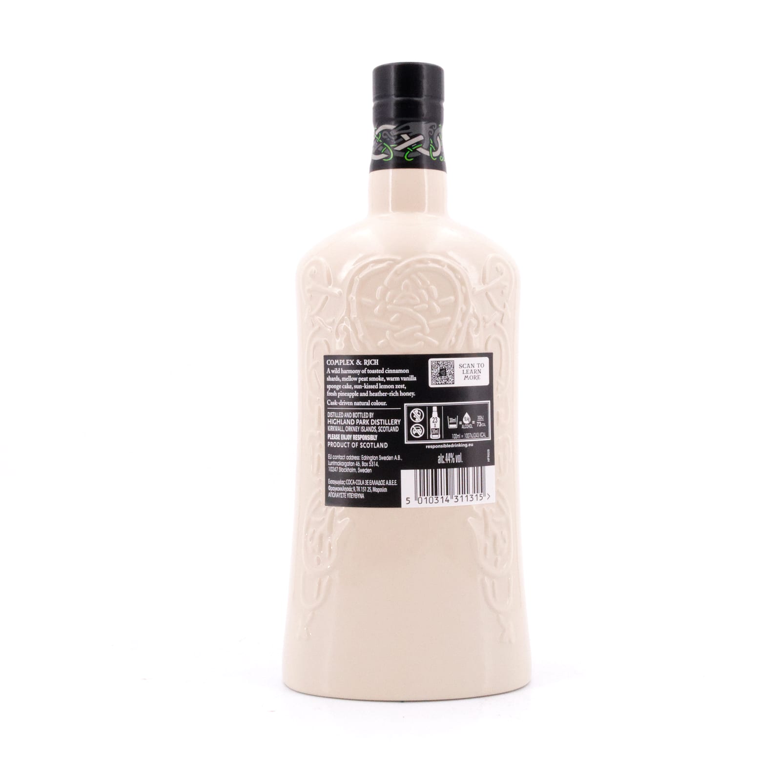 Von der nördlichsten Brennerei Schottlands, der Highland Park Destillerie in Kirkwall auf der Hauptinsel der Orkneys, kommt dieser Whisky. Die Destillerie hat in letzter Zeit eine Reihe Abfüllungen neu aufgelegt, die Optik der Flaschen und Etiketten wurde ebenfalls umgestaltet und eine neue Reihe für den Reisehandel kam im Sommer 2018 auf den Markt. Der „Highland Park Viking Heart 15 Jahre“ fällt zuerst auf wegen seiner cremefarbenen Keramikflasche, die aus den kundigen Händen der bekannten, britischen „Wade Ceramics“ stammt. Inspiriert von den Tongefäßen, die vor ein-, zweihundert Jahren für die Lagerung von Whisky genutzt wurden, trägt die Flasche rundum nordische Ornamente.