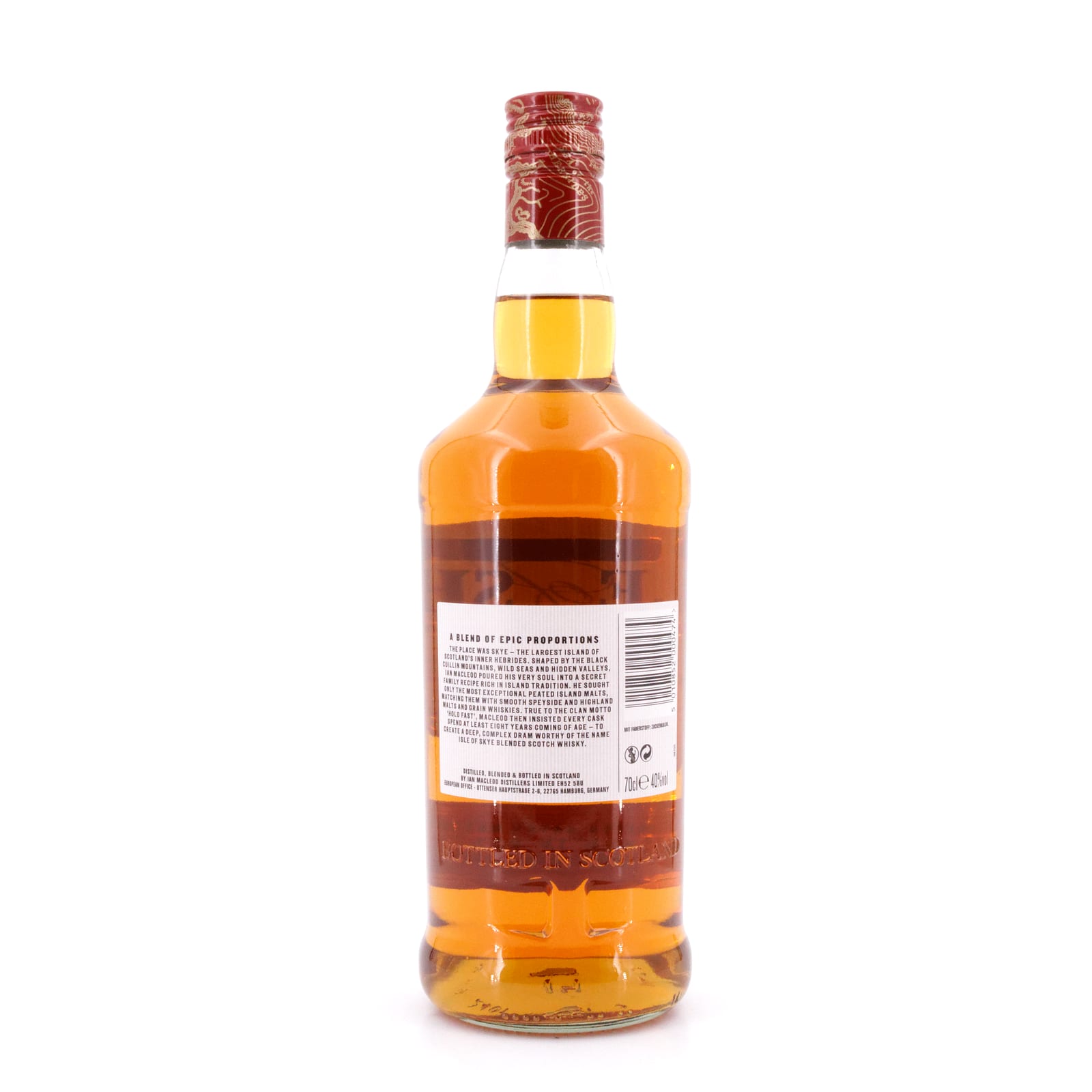 Der „Isle of Skye“ ist ein ungewöhnlicher Blend, trägt er doch eine Altersangabe. Seine Whiskies stammen aus der Speyside und von den Inseln ums schottische Festland herum. Benannt wurde er nach einer der meistbesungenen unter den Inseln, der Isle of Skye, die gleichzeitig seit vielen Jahrhunderten die Heimat des Clan MacLeod ist. Neben diesem achtjährigen Blend gibt es ihn auch als zwölf-, 18-, 21- und 50-Jährigen.