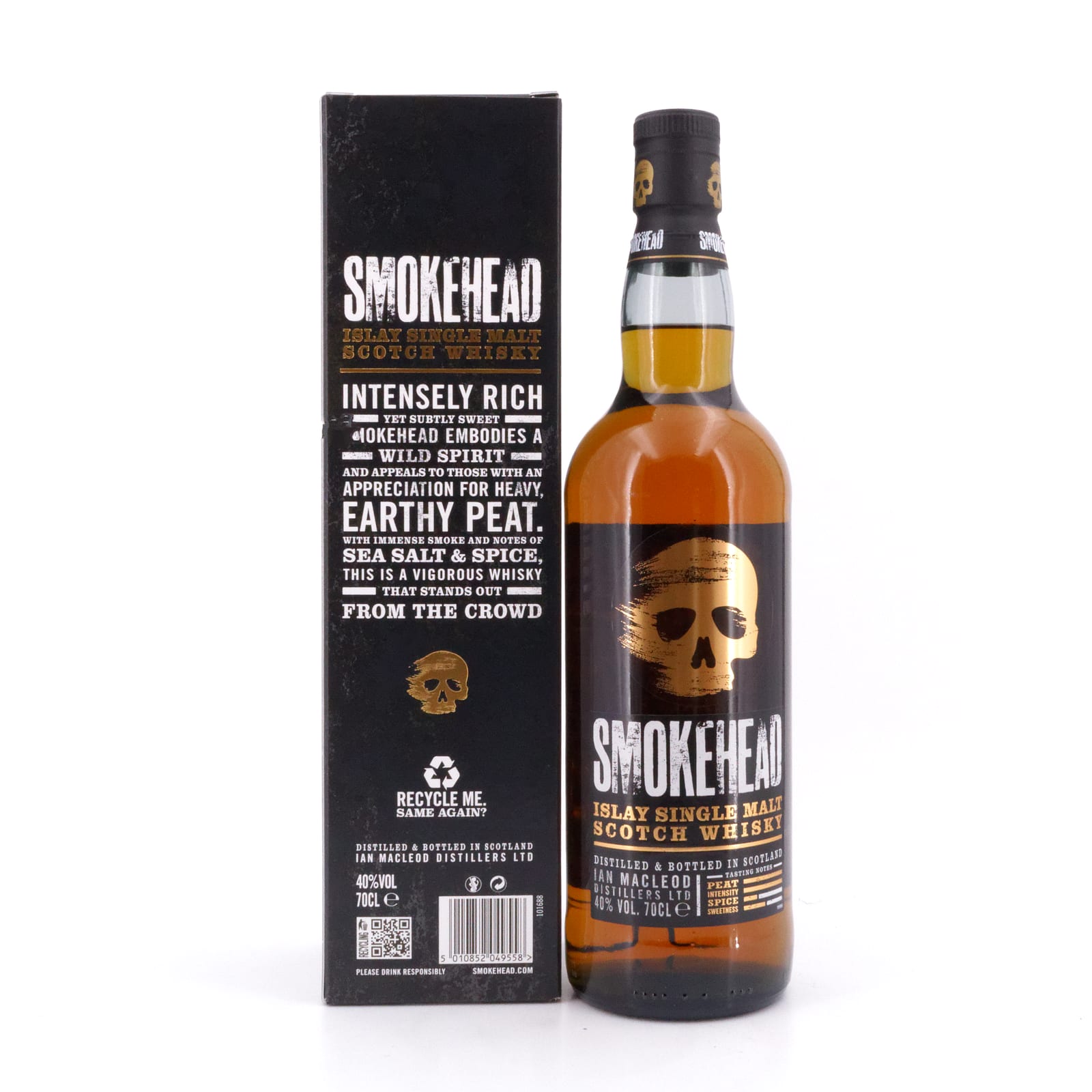 In den frühen 30er Jahren des 20. Jahrhunderts als Ian MacLeod and Company gegründet, gehören „Ian MacLeod Distillers“, wie die Firma seit dem Erwerb der Glengoyne Destillerie 2003 heißt, zu den vier größten unabhängigen Abfüllern Schottlands. Ihr Portfolio umfasst neben dem „Smokehead“ unter anderem die Reihe „As We Get It“ und die „Chieftain’s Range“. Der „Smokehead“ richtet sich an den nicht ganz alltäglichen, mutigen und dem Abenteuer nicht abgeneigten Whisky-Freund, der mehr sucht als „nur“ Whisky.