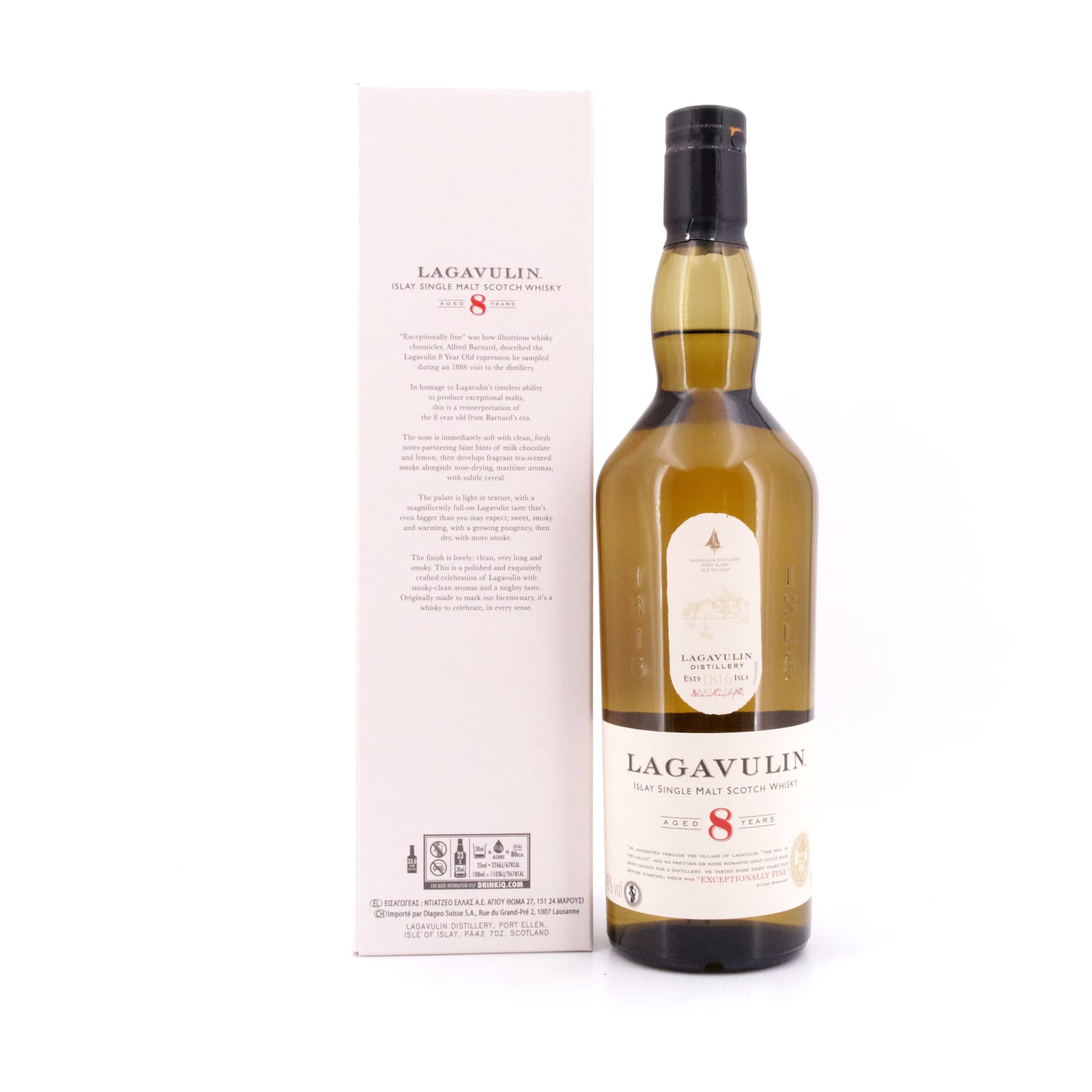 Die Lagavulin Destillerie liegt malerisch in einer kleinen Bucht an der südöstlichen Küste der Hebriden-Insel Islay. Berühmt für ihre zahlreichen Brennereien und ihren meist intensiv-würzigen, rauchig-torfigen Whisky, ist der Whisky der Lagavulin Destillerie ein klassischer Vertreter ebensolcher. Der Ort selbst hat eine weit zurückreichende Tradition, die ersten legalen Destillerien entstanden dort 1816. Eine – Lagavulin - gegründet von John Johnston, die Andere – Ardmore - von Archibald Campbell. 1837 verschmolzen beide Brennereien zur heutigen Lagavulin Destillerie. Umgeben von dunklen Torfmooren, bezieht man das Wasser aus den Solan Lochs am Fuße des Beinn Sholum und das Malz stammt aus den Port Ellen Maltings. Prägend für den Whisky Lagavulins sind die birnenförmigen Brennblasen, und die lange Dauer des Destillations-Prozesses: fünf Stunden für die Erste, bis zu neun Stunden für die zweite Destillation. Zu Ehren des 200. Geburtstages der Destillerie erscheint Anfang April 2016 ein achtjähriger Lagavulin als limitierte Sonderabfüllung, inspiriert von Alfred Barnard. Mr. Barnard war seinerzeit einer der wichtigsten und einflussreichsten Whisky-Kritiker, und seine sehr wohlwollenden Worte über einen achtjährigen Lagavulin legten damals den Grundstein für den Ruf Lagavulins Whiskies und die Erfolgsgeschichte der Destillerie.