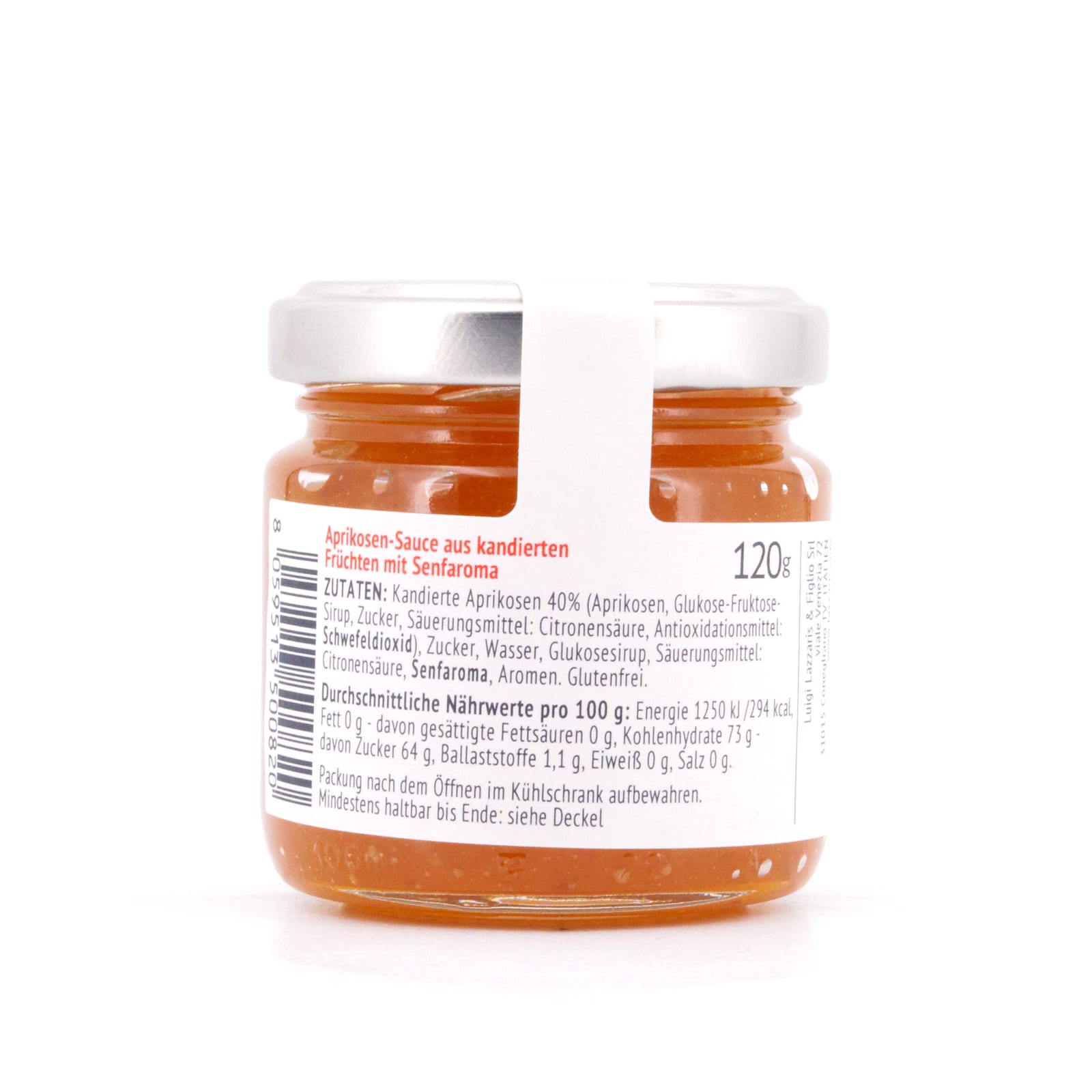 Zutaten: Kandierte Aprikose 40% (Aprikosen, Glukose-Fruktose-Sirup, Zucker, Säuerungsmittel: Citronensäure, Antioxidationsmittel: Schwefeldioxid), Zucker, Wasser, Glukosesirup, Säuerungsmittel: Citronensäure, Senfaroma, Aromen.