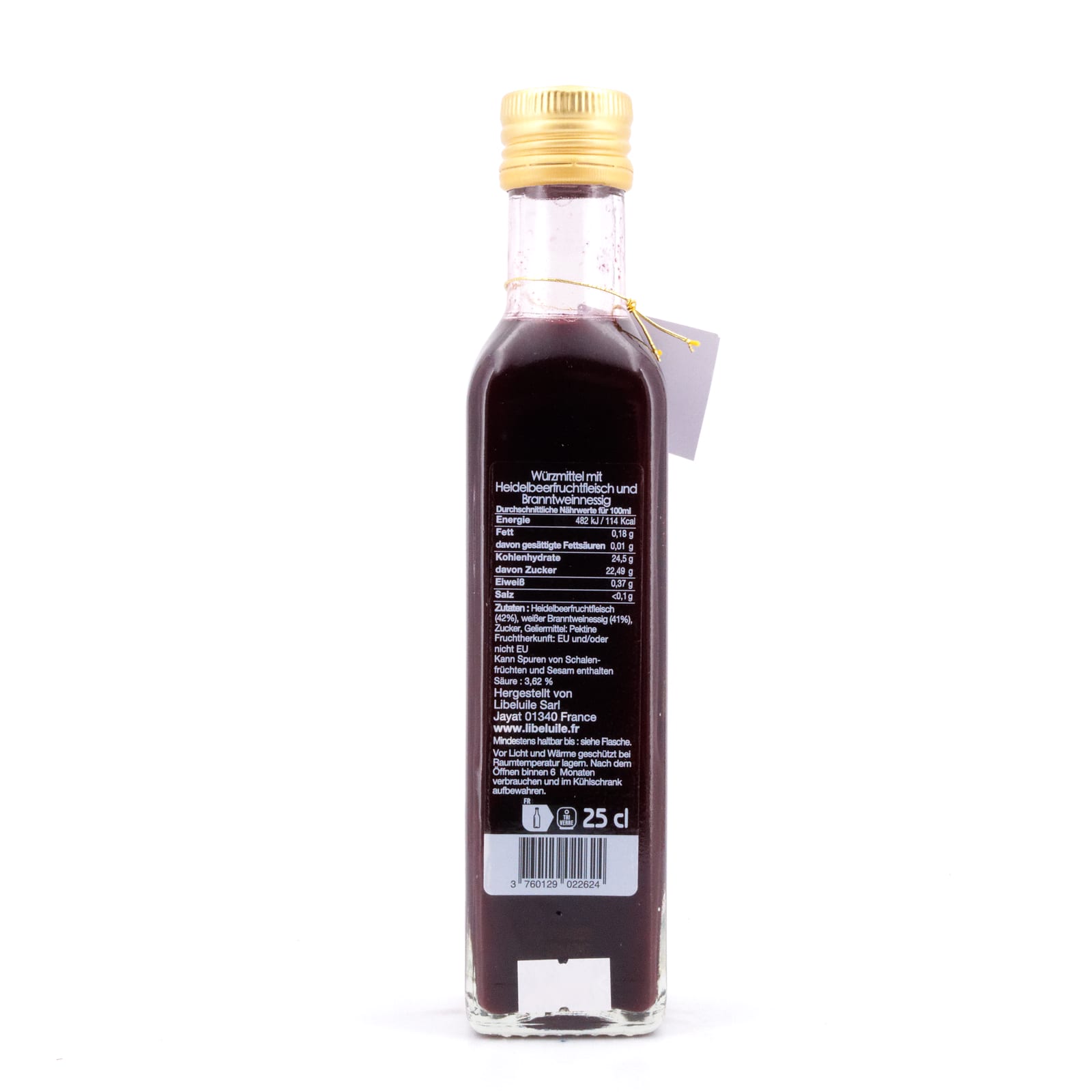 Aus der Kombination von feinem Weißweinessig und den fruchtig-süßen, aromatischen Heidelbeeren entsteht ein cremiger, Wald-würziger Essig, der sich wunderbar kombinieren lässt zu salzig wie süß – er passt zu dunklem Fleisch ebenso wie als Topping auf einen Vanillepudding oder einen frischen, cremigen Milchreis, probieren Sie es aus!