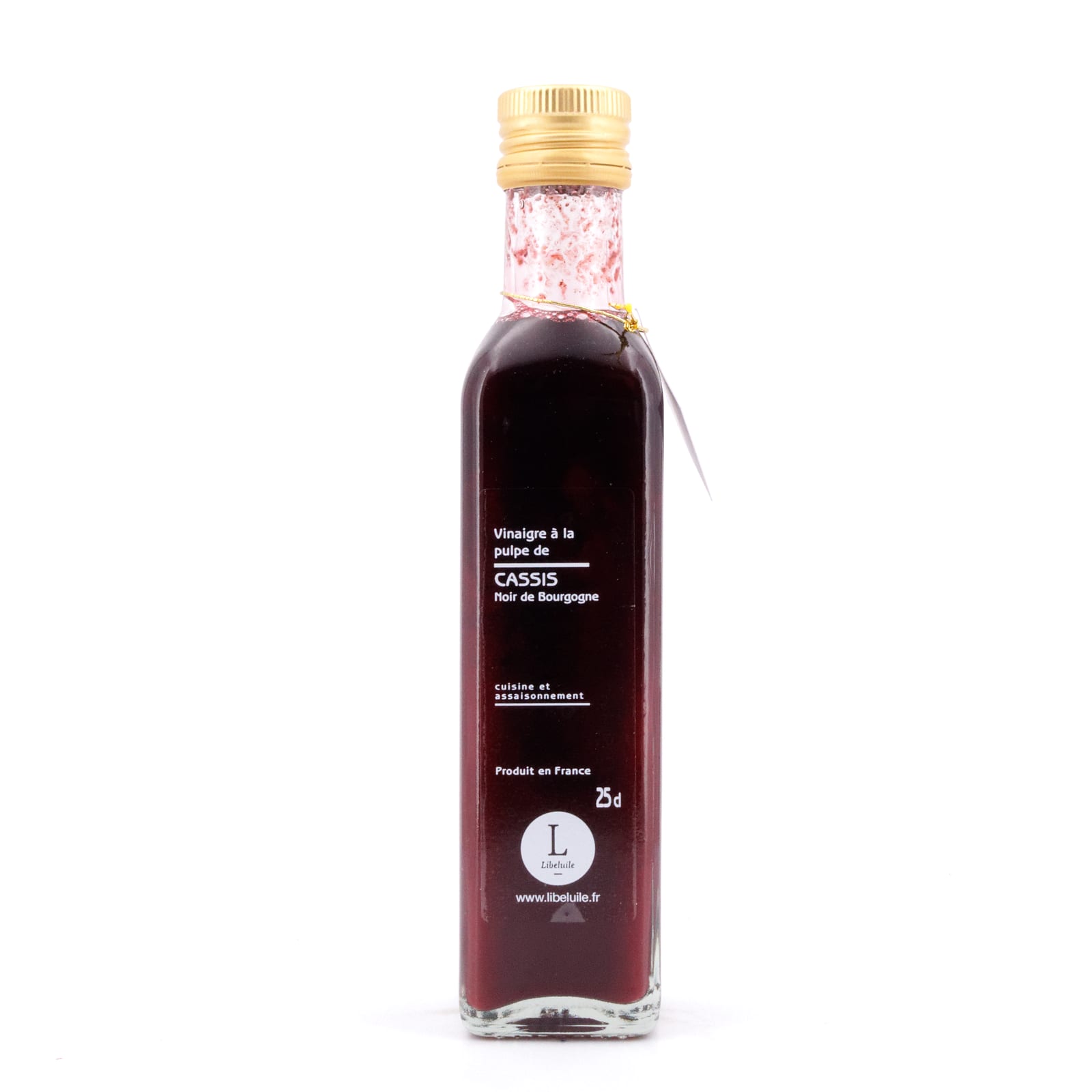Ihr „Libeluile Schwarzer Johannisbeeressig“ fällt auf durch seine elegant dunkelviolette Farbe, die er von den frischen Schwarzen Johannisbeeren erhält.
