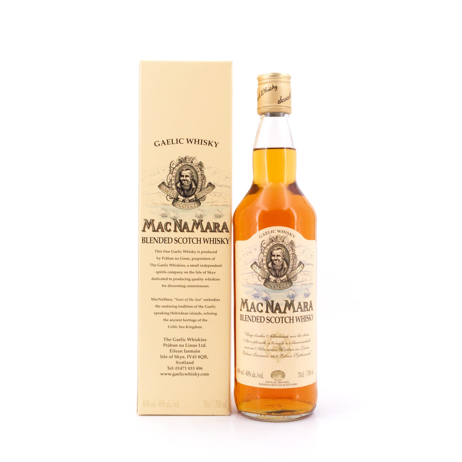 Pràban na Linne, das auf Gälisch in etwa so viel bedeutet wie „Whiskyhaus an der Meerenge von Sleat“ ist ein Unternehmen, das Mitte der 1970er Jahre von Ian Noble, einem in Berlin geborenen, britischen Sohn eines Diplomaten-Ehepaares und Geschäftsmann, gegründet wurde. Sein Ziel war es, einen Whisky zu kreieren, wie ihn die schottisch-gälischen Bewohner der äußeren und der inneren Hebriden schätzen würden. Der Hauptsitz dieses unabhängigen Whisky-Produzenten liegt in Eilean Iarmain (Isleornsay), an der Küste des Sound of Sleat. Seinerzeit Vorreiter bei der Wiedereinführung des nicht kühlfiltrierten Whiskies, hat das Unternehmen 2014 auf dem Gelände der historischen Cnoc Farm im Süden von Skye den Neubau einer Destillerie, „Torabhaigh“ genannt, begonnen, die im Frühjahr 2017 ihren Betrieb aufnehmen konnte. Der „Pràban Na Linne MacNaMara“ ist ein Whisky-Blend, nicht kühlfiltriert und mit 40 Vol% angefüllt.