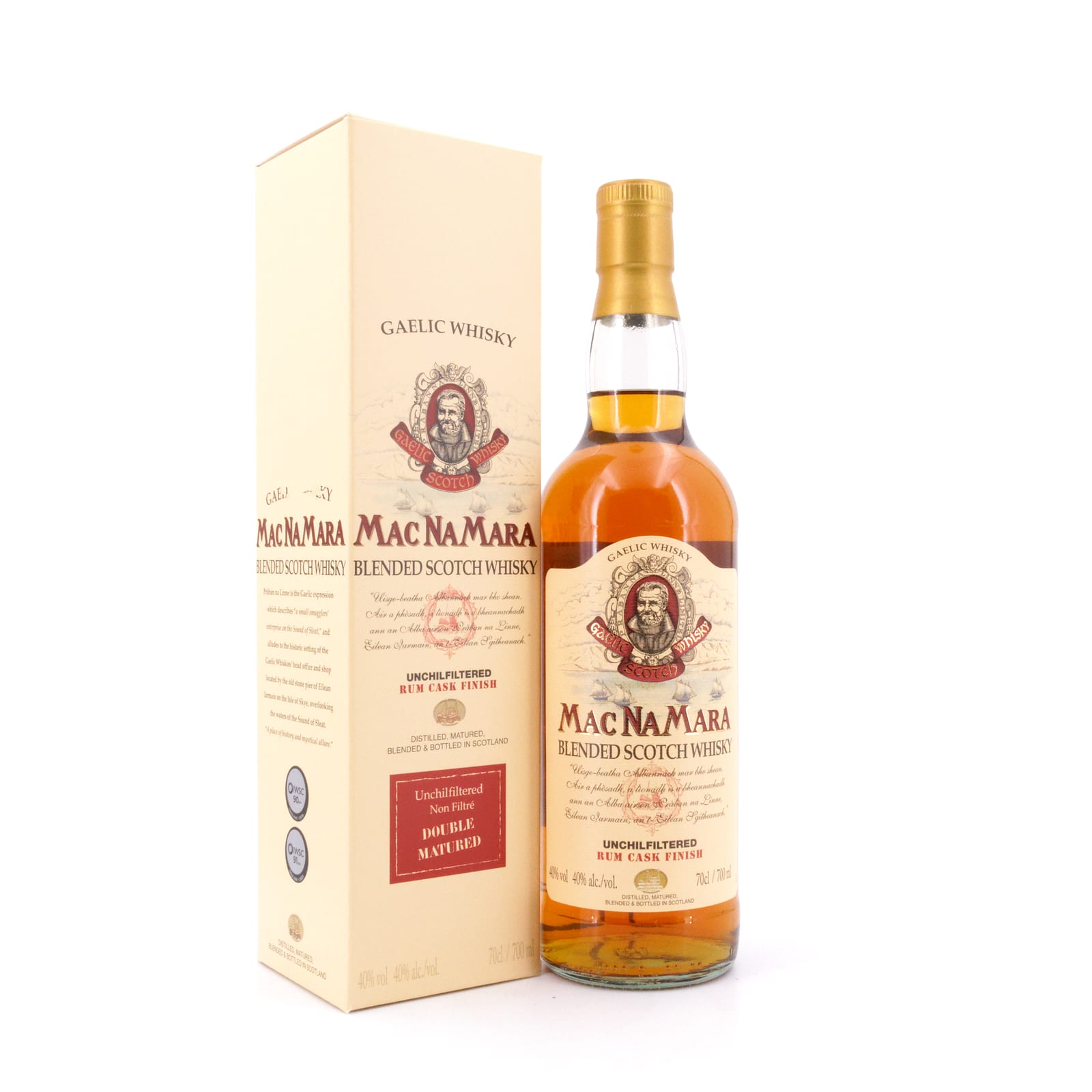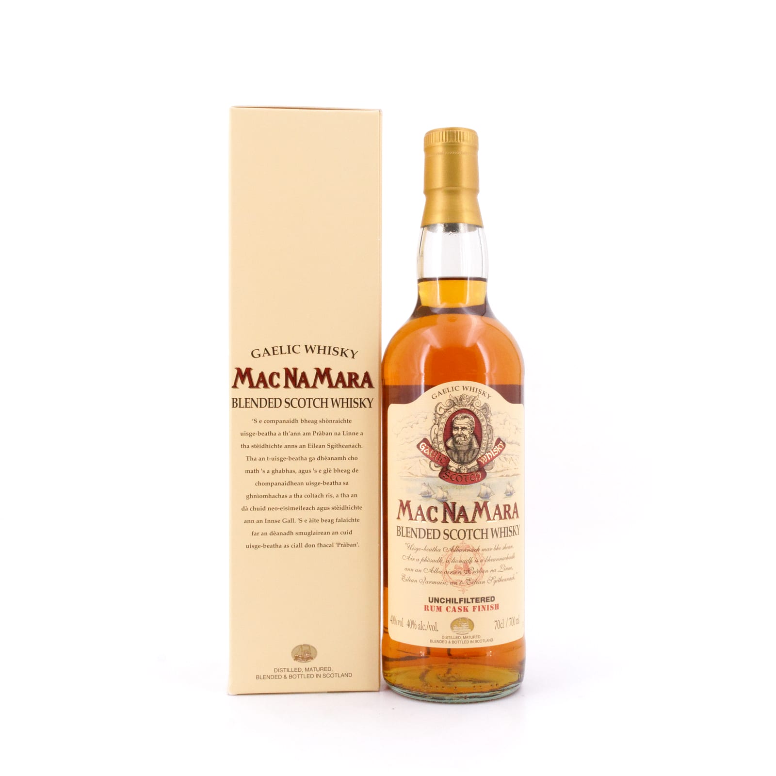 Der „MacNaMara“ ist ein Blended Whisky des unabhängigen Whisky-Produzenten „Pràban Na Linne“. Pràban na Linne, auf Gälisch in etwa „Whiskyhaus an der Meerenge von Sleat“ ist ein Unternehmen, das Mitte der 1970er Jahre von Ian Noble, einem in Berlin geborenen britischem Geschäftsmann und Sohn eines Diplomaten-Ehepaares, gegründet wurde. Sein Ziel war es, einen Whisky zu kreieren, wie ihn die schottisch-gälischen Bewohner der Hebriden schätzen würden. Der Hauptsitz dieses unabhängigen Whisky-Produzenten liegt in Eilean Iarmain (Isleornsay), an der Küste des Sound of Sleat. Der „Pràban Na Linne MacNaMara Rum Cask Finish“ ist ein Whisky-Blend, der für seine abschließende Reifung ein Jahr lang in ehemaligen Rum-Fässern aus Guyana gelagert wurde, bevor er wie üblich nicht kühlfiltriert und in Trinkstärke mit 40 Vol% abgefüllt wurde.