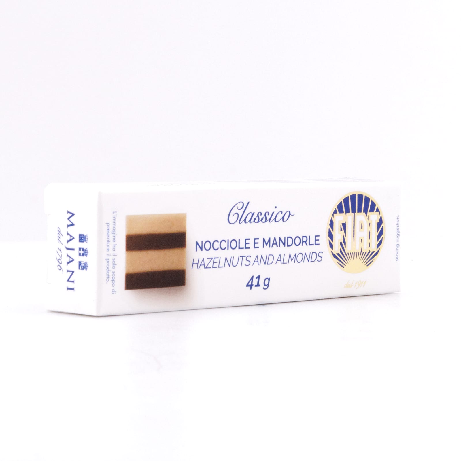 Die Serie „Majani FIAT“ gehört zu den lange etablierten und heute noch viel geliebten Klassikern des Unternehmens. Die vierschichtige Praline aus Haselnuss- und Mandelnougatcreme wurde von Chocolatier Aldo Majani für den italienischen Autohersteller FIAT zur Einführung des Modells FIAT TIPO 4 im Jahre 1911 entwickelt und gehört immer noch zu den Verkaufsschlagern Majanis.