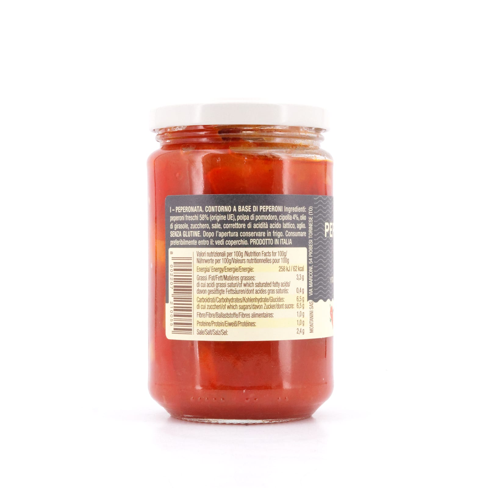 Hinter der „Montanini Peperonata“ verbirgt sich das traditionelle italienische Schmorgericht Peperonata, aus vielfarbiger Paprika, Tomaten und Zwiebeln, je nach Region und Tradition verfeinert mit Sardellen, Kapern, Knoblauch, Fisch oder Fleisch.