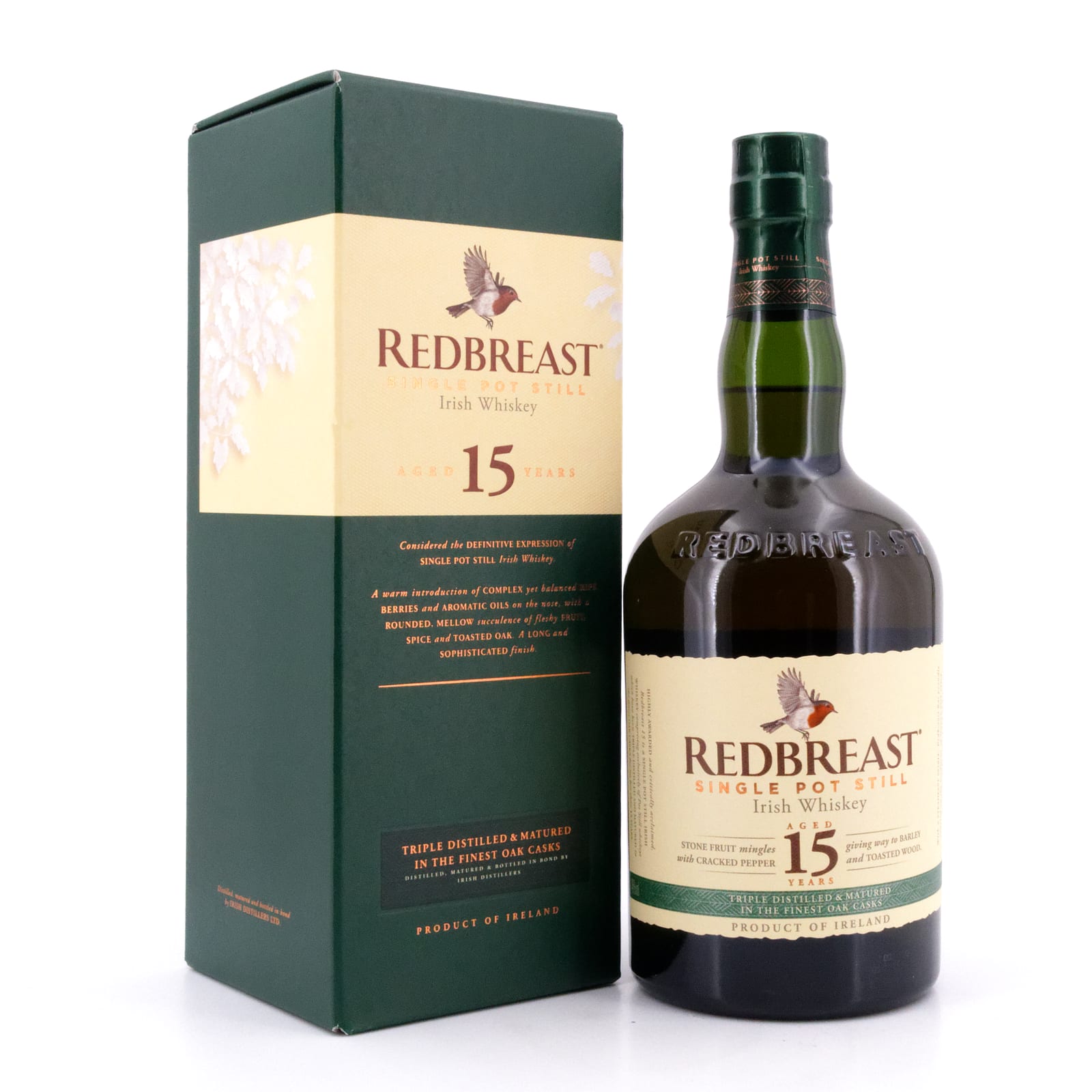 Bestellen Sie Ihren Redbreast 15 Jahre und tauchen Sie ein in die Welt des exquisiten irischen Whiskeys, der für seine einzigartige Mischung aus Fruchtigkeit, Gewürzen und Holznoten bekannt ist.