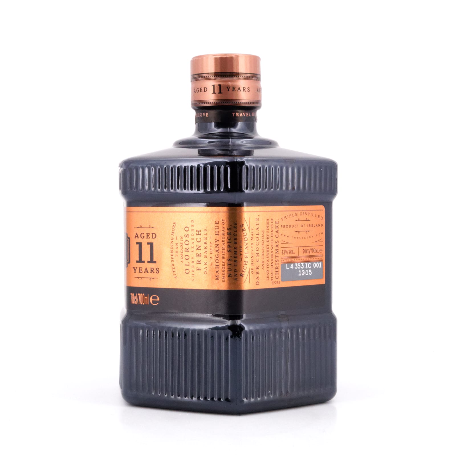 The Sexton ist bekannt für seine modernen und dennoch traditionsbewussten irischen Single Malts. Mit der 11-jährigen Abfüllung präsentiert die Marke erstmals einen Whiskey mit Altersangabe. Dieser außergewöhnliche Single Malt reifte über ein Jahrzehnt in ehemaligen Oloroso-Sherryfässern aus französischer Eiche und bietet eine unverwechselbare Tiefe und Komplexität.