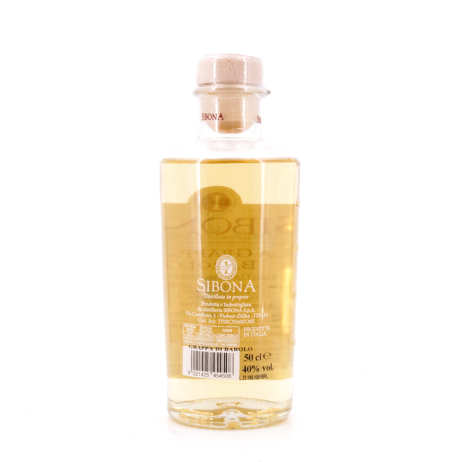 Die „Distilleria Domenico Sibona S.p.A.“ mit ihrem „Grappa Sibona“ besitzt die älteste Brennlizenz des Piemonts und gehört damit zu den ältesten und erfolgreichsten Grappa-Produzenten Italiens. Gebrannt wird in der Antica Distilleria Domenico Sibona in Piobesi d’Alba in der Provinz Cuneo im Piemont. Der Trester für die Destillation stammt überwiegend von den umliegenden Weinbergen und wird nach Ankunft an der Brennerei stets ganz frisch verarbeitet. Dieser reinsortige Premium-Grappa – hier aus Trester der Barolo-Traube - erscheint in limitierter Edition, die jeweilige Flaschennummer ist auf die edle Holzbox geprägt. Der „Sibona Grappa di Barolo“ stammt aus dem Jahr 2008 und wurde nach seiner initialen Lagerung in Edelstahltanks abschließend im Eichenholzfass gereift.