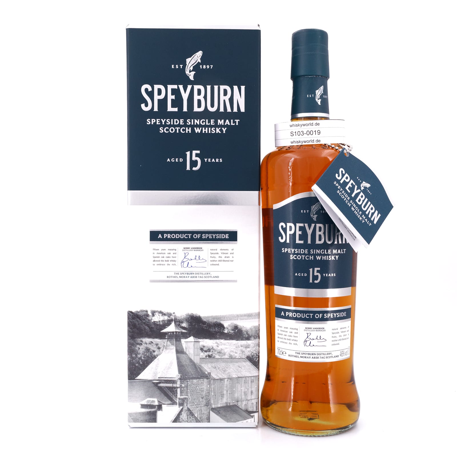 Der 15 Jahre alte „Speyburn Single Malt“ gehört seit Ende 2017 zum Standard-Portfolio der Brennerei. Gelagert in den typischen, sog. Dunnage Warehouses vor Ort in einer Mischung aus amerikanischen und spanischen Eichenholz-Fässern, wird er mit kräftigen 46 Vol% Alkoholgehalt abgefüllt.