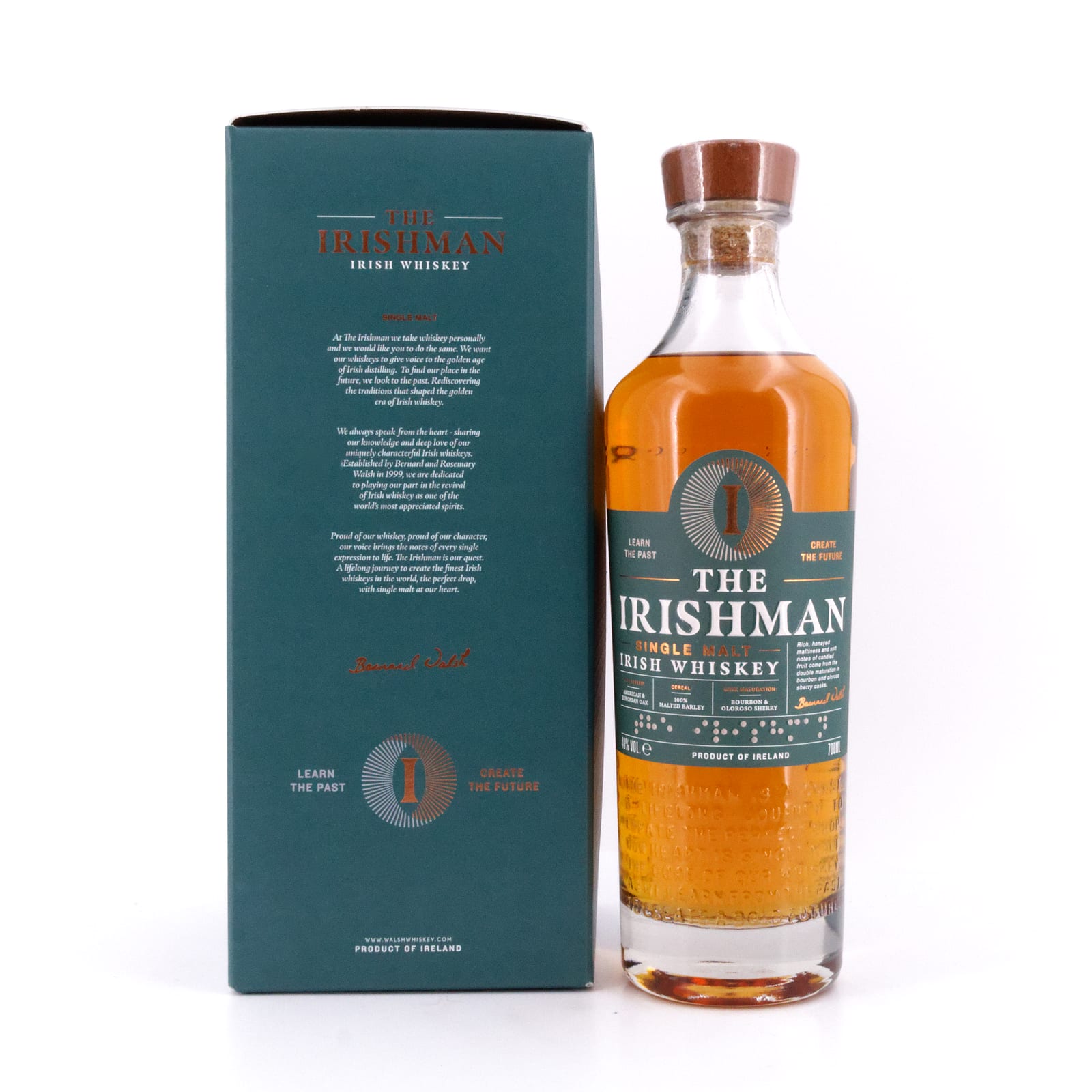 Der The Irishman Irish Single Malt Whiskey, bewertet mit 83 Punkten von Jim Murray, ist ein dreifach destillierter, klassischer irischer Malt. Nach einer zehnjährigen Reifung in Bourbon- und Oloroso Sherry-Fässern, besticht dieser Whiskey durch seine Einzigartigkeit. Jede Flasche ist individuell nummeriert und signiert, von Bernard Walsh, dem Gründer der Destillerie.