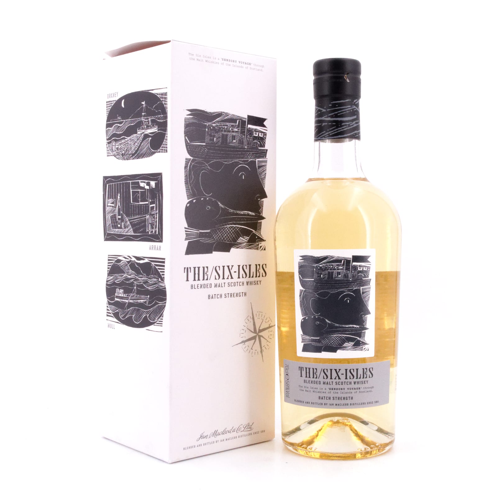 „The Six Isles Blended Whisky“ stammt von der „William Maxwell Scotch Whisky Ltd.“, hinter der der unabhängige Abfüller „Ian MacLeod Distillers“ steht. Er ist ein klassischer Vatted Malt, ins Leben gerufen in den 1990er Jahren und enthält Whisky von den sechs Whisky-produzierenden Inseln Schottlands: Arran, Islay, Jura, Mull, Orkney und Skye. Wenn man so will ist dieser Malt also eine Sinnesreise in die Welt der Insel-Whiskies, von den fein salzigen Heidekraut-Aromen Orkneys zu den tief torfigen Noten Islays. Whisky-Experte Jim Murray schrieb 2004 über den „Six Isles Whisky“, er halte ihn für den besten Standard Vatted Malt seines bisherigen Lebens. Nicht kühlfiltriert wird dieser Whisky hier mit üppigen 58 Vol% abgefüllt.