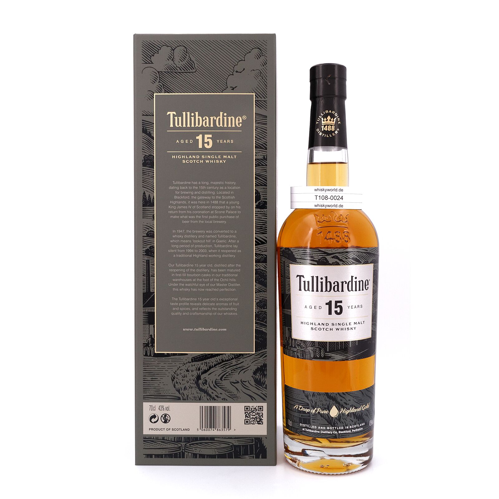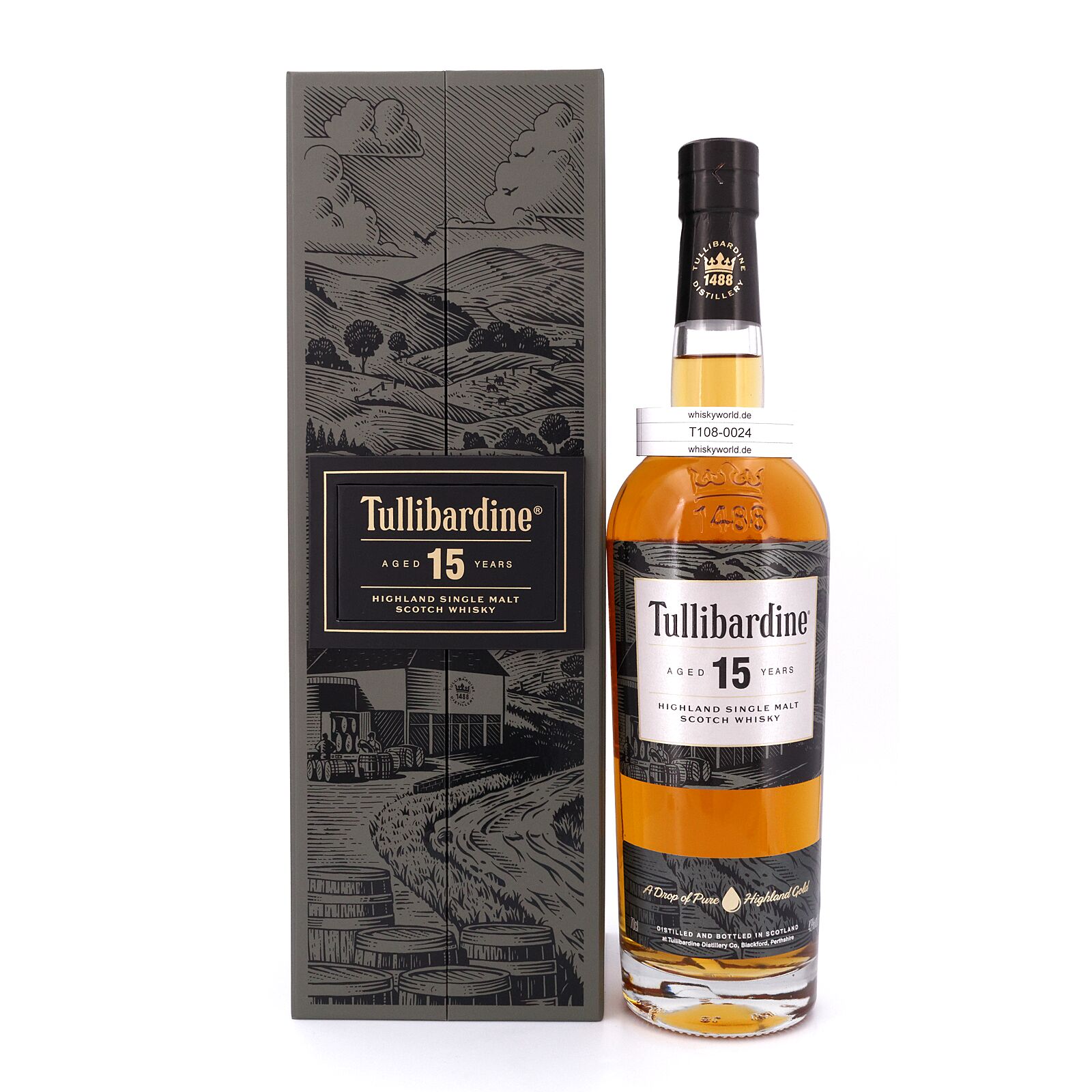 Die Tullibardine Destillerie gehört zu den vergleichsweise jungen Brennereien, obwohl Brauen und Destillieren in dem kleinen Ort am Rande der Highlands eine lange Tradition haben. So wurde an der Stelle der heutigen Destillerie im Jahre 1488 der erste öffentliche Bierverkauf verzeichnet, als König James VI. auf dem Weg zu seiner Krönung in Blackford Halt machte. Eröffnet wurde Tullibardine im Jahr 1949, allerdings bereits Mitte der 1990er Jahre schon stillgelegt, bis 2003 der Brennbetrieb dann wieder aufgenommen werden konnte. Dieser 15 Jahre alte Tullibardine Single Malt stammt aus genau dieser ersten Zeit der Wiedereröffnung und ist eine der wenigen Standardabfüllungen mit Altersangabe. Gelagert in First Fill ex-Bourbon-Fässern, wird er ungefärbt in Trinkstärke mit 43 Vol% Alkoholgehalt abgefüllt.