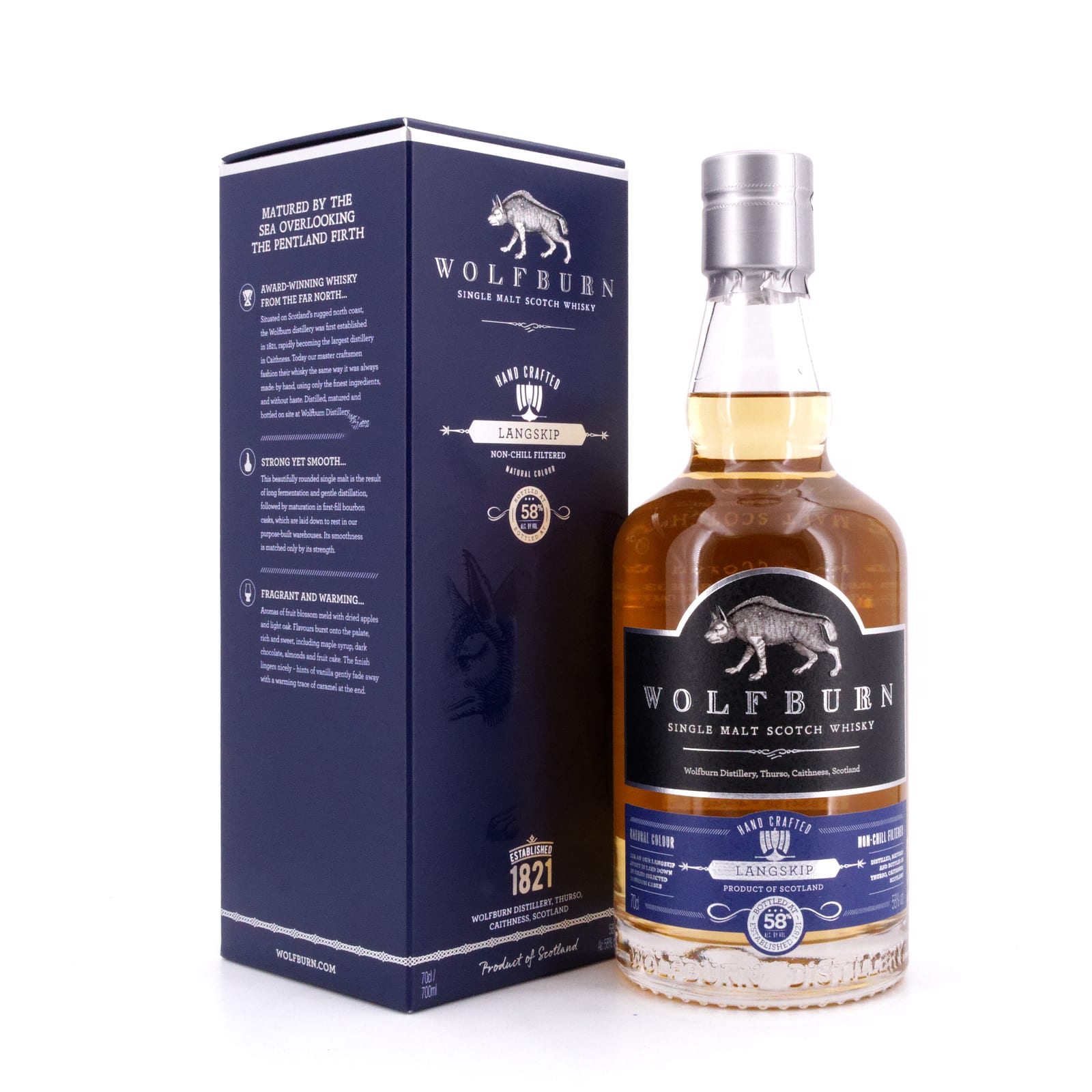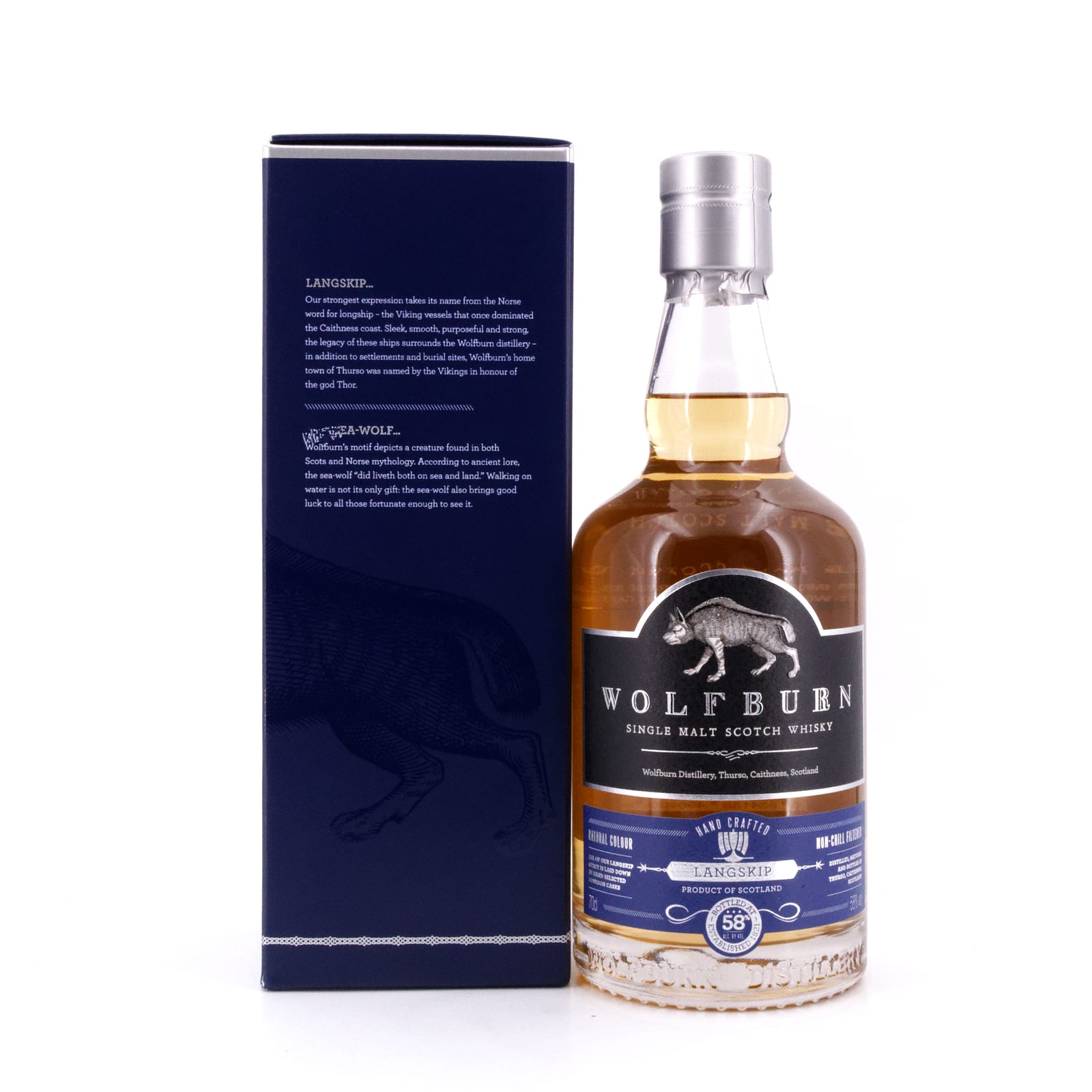 Der „Wolfburn Langskip“ ergänzt als Vierter im Bunde nun das Kernsortiment, aktuell bestehend aus dem „Wolfburn Northland“, dem „Wolfburn Aurora“ und dem „Wolfburn Morven“. Der Whisky für diesen „Wolfburn Langskip“, benannt nach den kraftvollen, eleganten Langbooten der Wikinger, stammt aus den ersten, 2013 nach der Inbetriebnahme abgefüllten First Fill Bourbon-Fässern. Nicht kühlfiltriert und ungefärbt wurde er mit kräftigen 58 Vol% Alkoholgehalt abgefüllt.